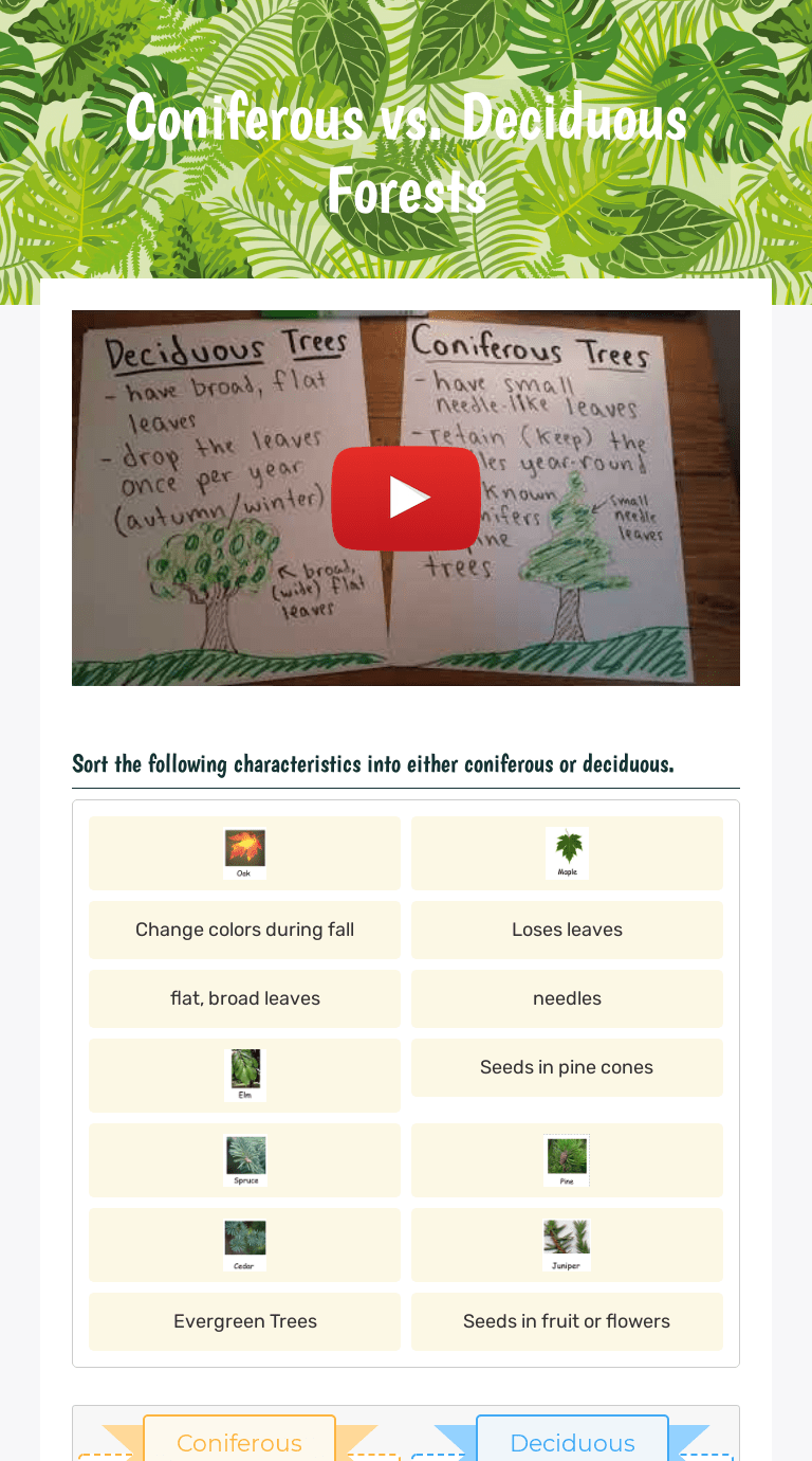 Must contain at least 4 different symbols; Coniferous and deciduous forests problem solving: Download the multiple leaf template and multiple flower template. Coniferous forests are have lots of conifers like lodgepole pine, which keep their needles (special leaves) all year long. Worksheet packet with answer keys;